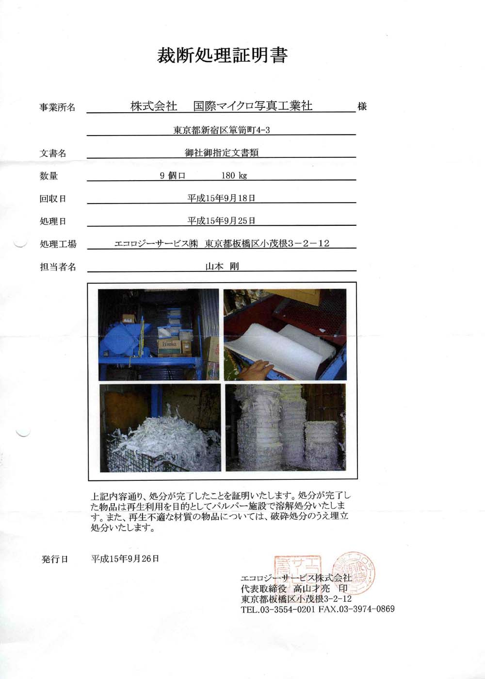 | ●シュレッダー紙や他の廃棄物は、新宿区の 「事業系有料ごみ処理券」 を添付して廃棄 |